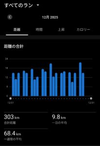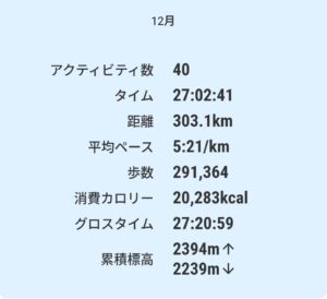今年は最後の12月に、股関節唇損傷と診断されて以来、4年ぶりに月間300㎞走れました!